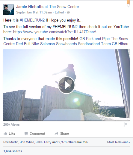 Ultimately doesn’t make a huge amount of difference – if someone views the video, then it boosts Nicholls’ profile, as well as adding value to the sponsors and partners who are featured within the video.