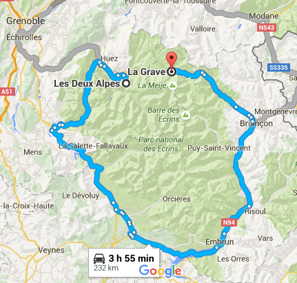 Even Google is playing ball. It takes 35 minutes to drive from Les 2 Alpes to La Grave via the new road. However, Google suggests you take a 232km diversion that will take around 4 hours.