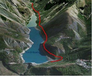 It is actually possible to drive to La Grave. Last summer, a large amount of work was done to convert an old trail into an accessible road on the southern side of the lake.
