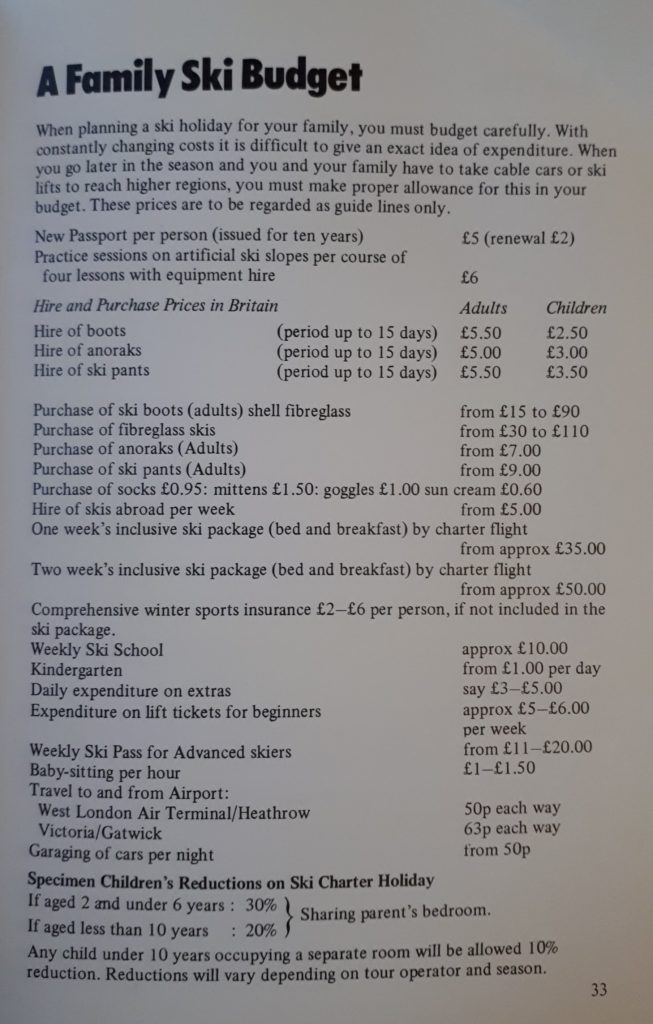 We wondered how that would compare with the prices in one of our favourite ski books – Erna Low’s Guide to Family Skiing – first published in 1974.