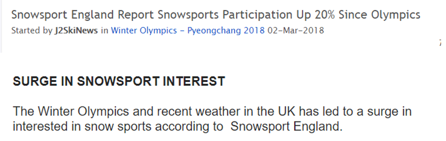 Rebecca Hicks from The Snow Centre in Hemel Hempstead was quoted in The Guardian on Friday 16 February saying that they had seen a 20% increase in visits since the Games started.