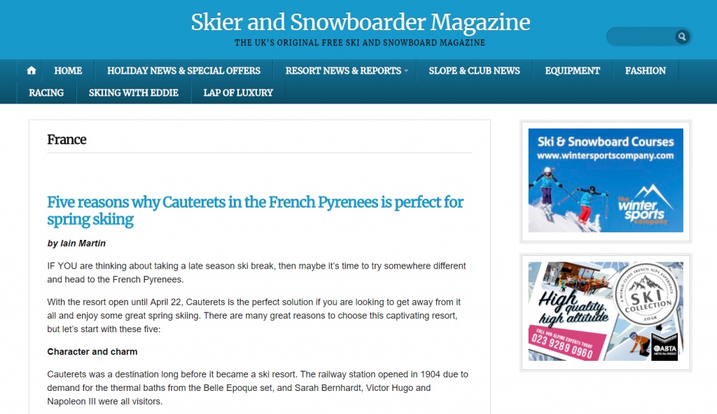 In January 2018, Iain from Skipedia went to Cauterets in the French Pyrenees as part of his work for ‘Go to the French Pyrenees‘.