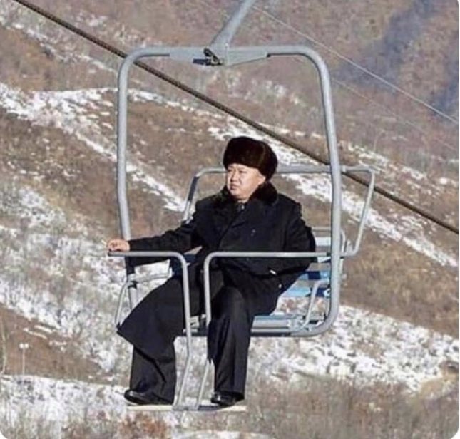 Nothing says you have no friends more than this photo of Kim Jong-un, smoking a cigarette, sitting on a chairlift, on his own.
