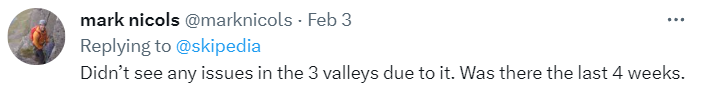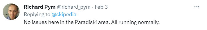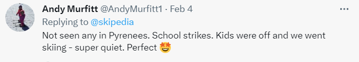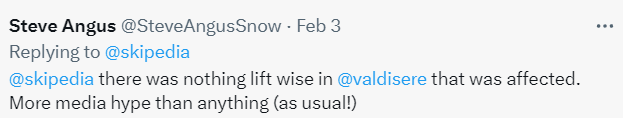 To be fair the last headline referred to the UK as well. However, out in the Alps, skiing seemed to be largely unaffected, according to feedback from Twitter: