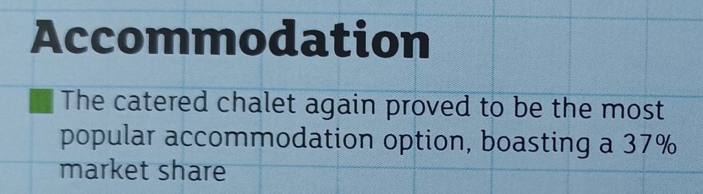 In 2009, the Ski Club of Great Britain’s Snowsports Analysis reported that 37% of all British skiers stayed in catered chalets – making it the most popular accommodation option.