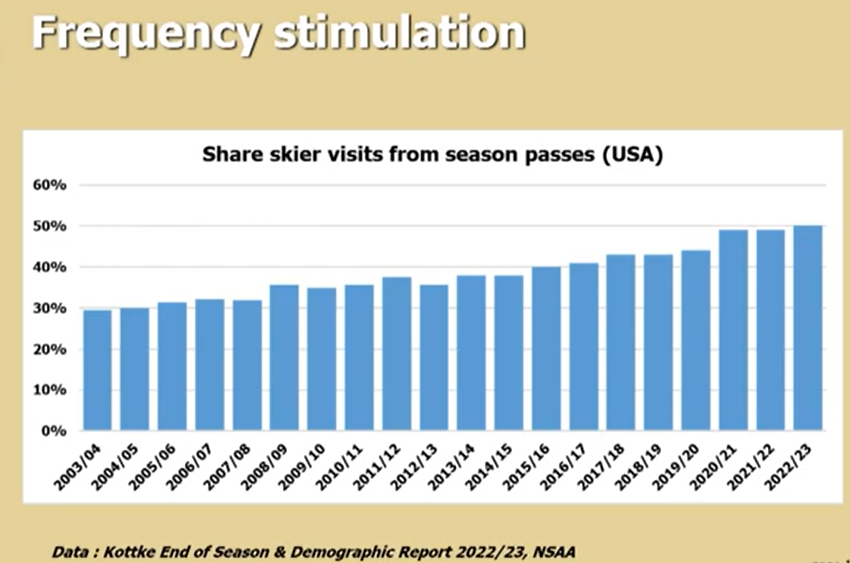The 2022/23 season was the first time that 50% of all US skier visits came from season passes (in this case the Epic Pass and Ikon Pass).